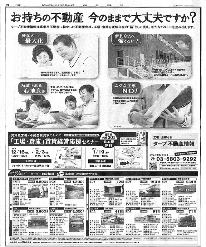BIG tomorrowに工場・倉庫の特集としてタープ不動産情報が特集されました