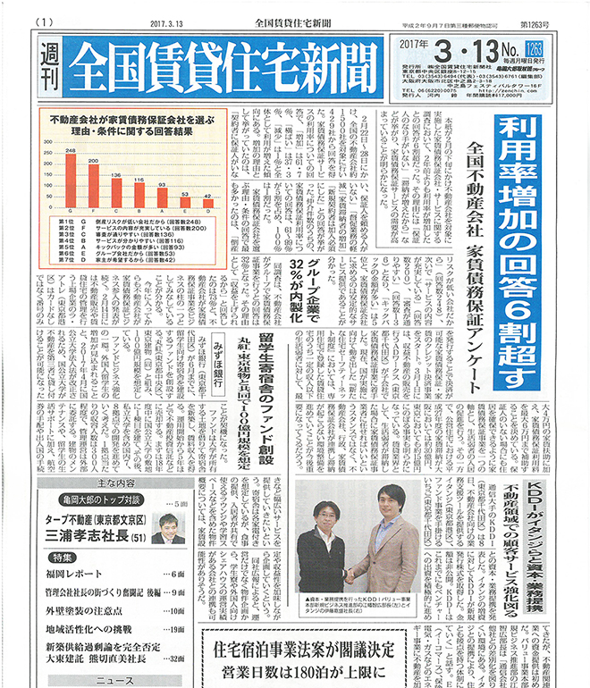 週刊全国賃貸住宅新聞に弊社記事が掲載されました